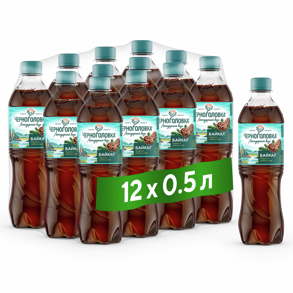 Байкал от Черноголовки – хвойный вкус в линейке легендарных лимонадов. Он создан на основе эфирных масел, экстракта чая и чистой артезианской воды. Вы ощутите прохладу чистых вод Байкала и почувствуете освежающий ветер тайги. Элеутерококк в составе придает бодрящие свойства, темный цвет и едва уловимую терпкость.