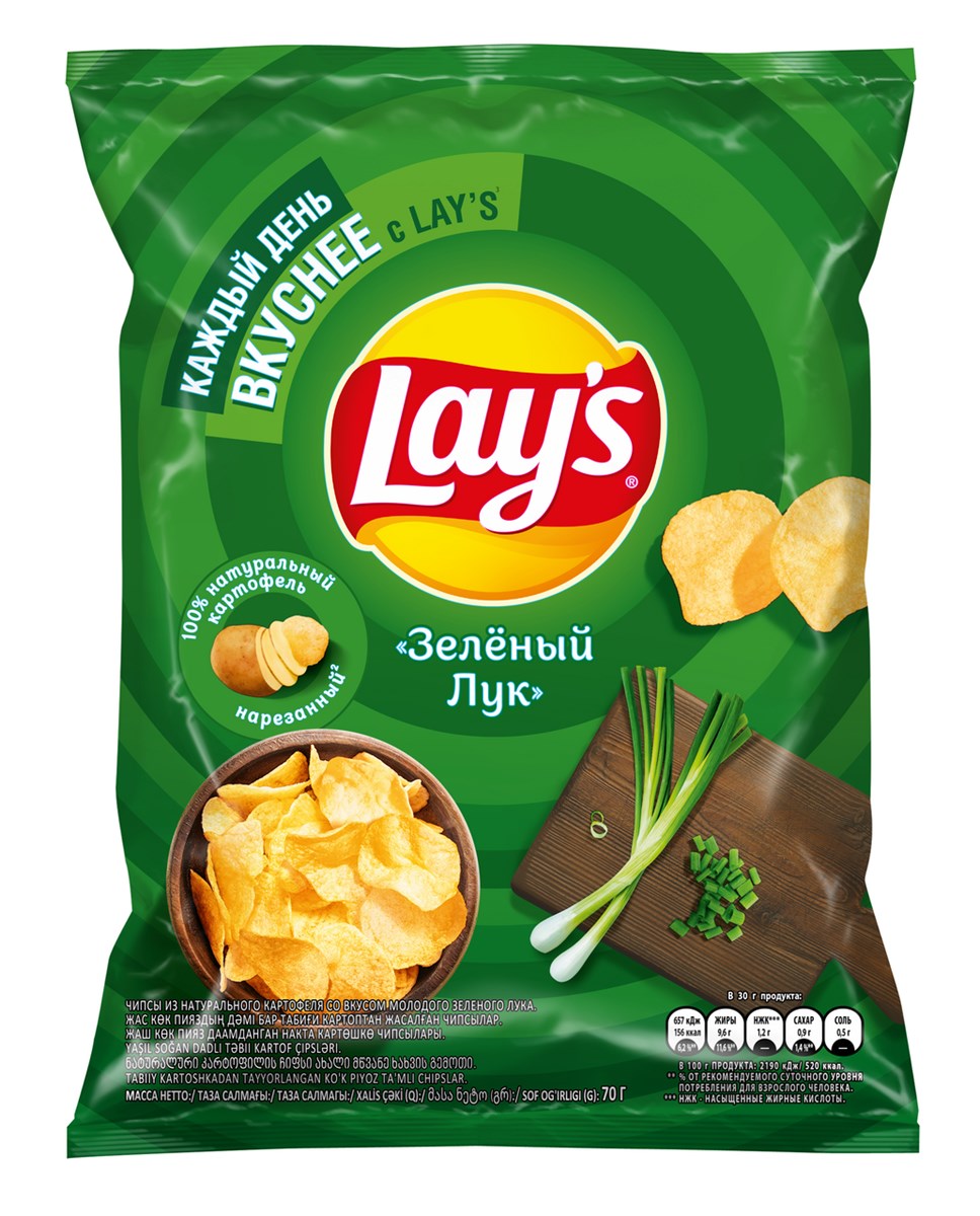 Чипсы Lays со вкусом молодого зеленого лука, 70 г.
