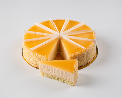 Классический чизкейк из легкого сливочного крема, хрустящего песочного коржа, дополненный пюре манго..