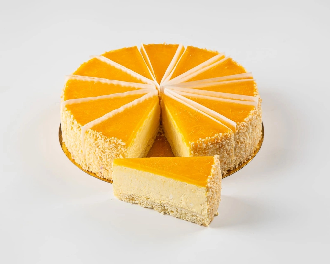 Классический чизкейк из легкого сливочного крема, хрустящего песочного коржа, дополненный сочным творожным сыром и пюре манго.