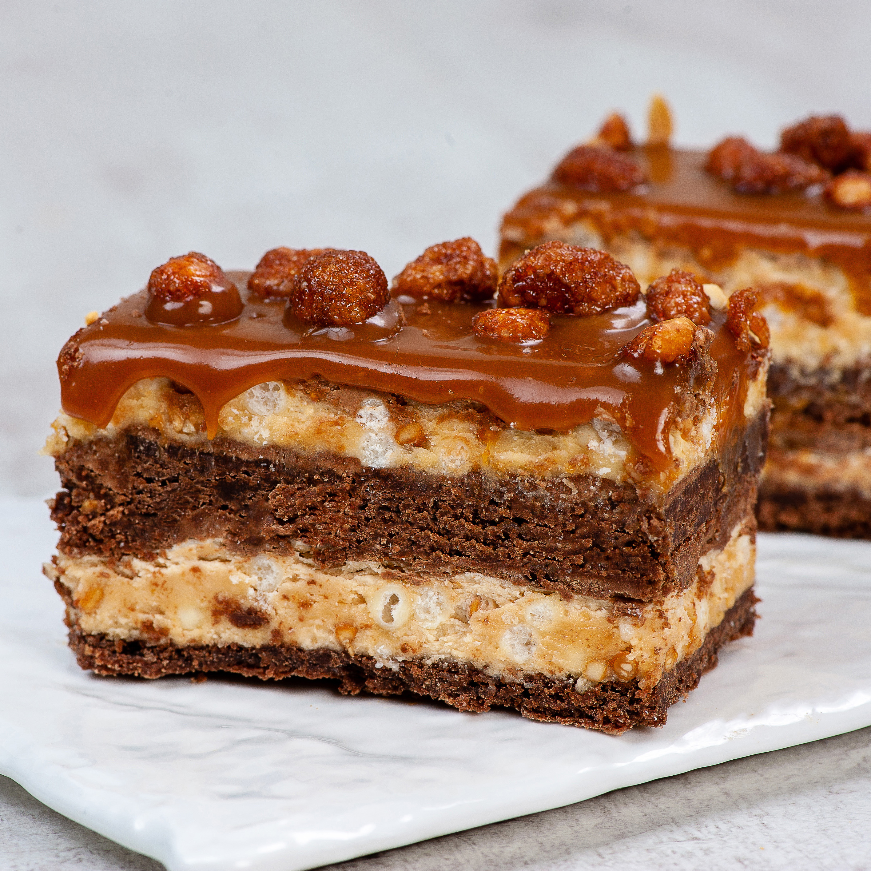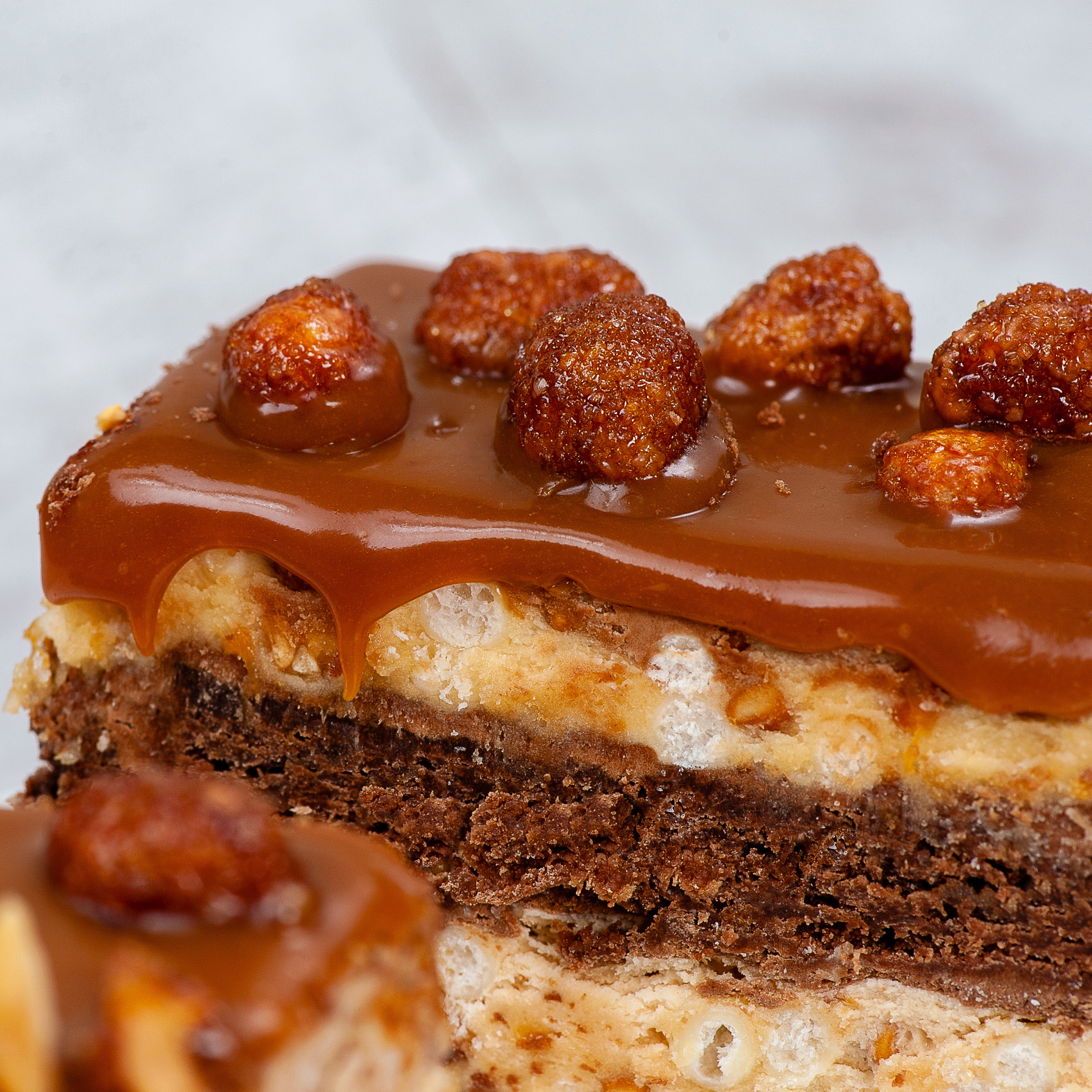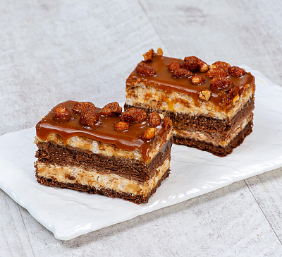 • Состав: сахар, сливки 33%, маргарин (растительные масла, вода, эмульгаторы: моно и диглицериды жирных кислот, соевый лецитин, соль, консервант: сорбат калия, регулятор кислотности: лимонная кислота), паста ореховая (арахисовая), сгущенное молоко (молоко коровье нормализованное, саар), шоколад 54%, арахисовая паста кремовая (ядра арахиса, декстроза: глюкоза, растительные диры: хлопковое, соевое, рапсовое масло, соль), «Пэк» глазированный формовой (крупа рисовая, сахар, глюкоза, сухое молоко, соль, сода, ванилин, вода), смесь сухая для бисквитов и кексов (какао-порошок, крахмал пшеничный, мука пшеничная, загуститель: дикрахмалфосфат ацетилированны, разрыхлители: гидрокарбонатрия, дигидропирофосфат натрия, орто-фосфат кальция -замещенный, эмульгатор: моно и диглицериды жирных кислот, клейковина пшеничная, сыворотка сухая молочная, соль, загуститель: ксантовая камедь, ароматизатор), арахис, молочный шоколад (сахар, масло какао, сухое цельное молоко, какао тертое, эмульгатор: соевый лецитин, натуральный ароматизатор: ванилин), ароматизатор: ваниль, эмульгатор: лецитин, соль, стабилизатор: ксантовая камедь. Продукт содержит краситель, который может оказывать отрицательное влияние на активность и внимание детей.