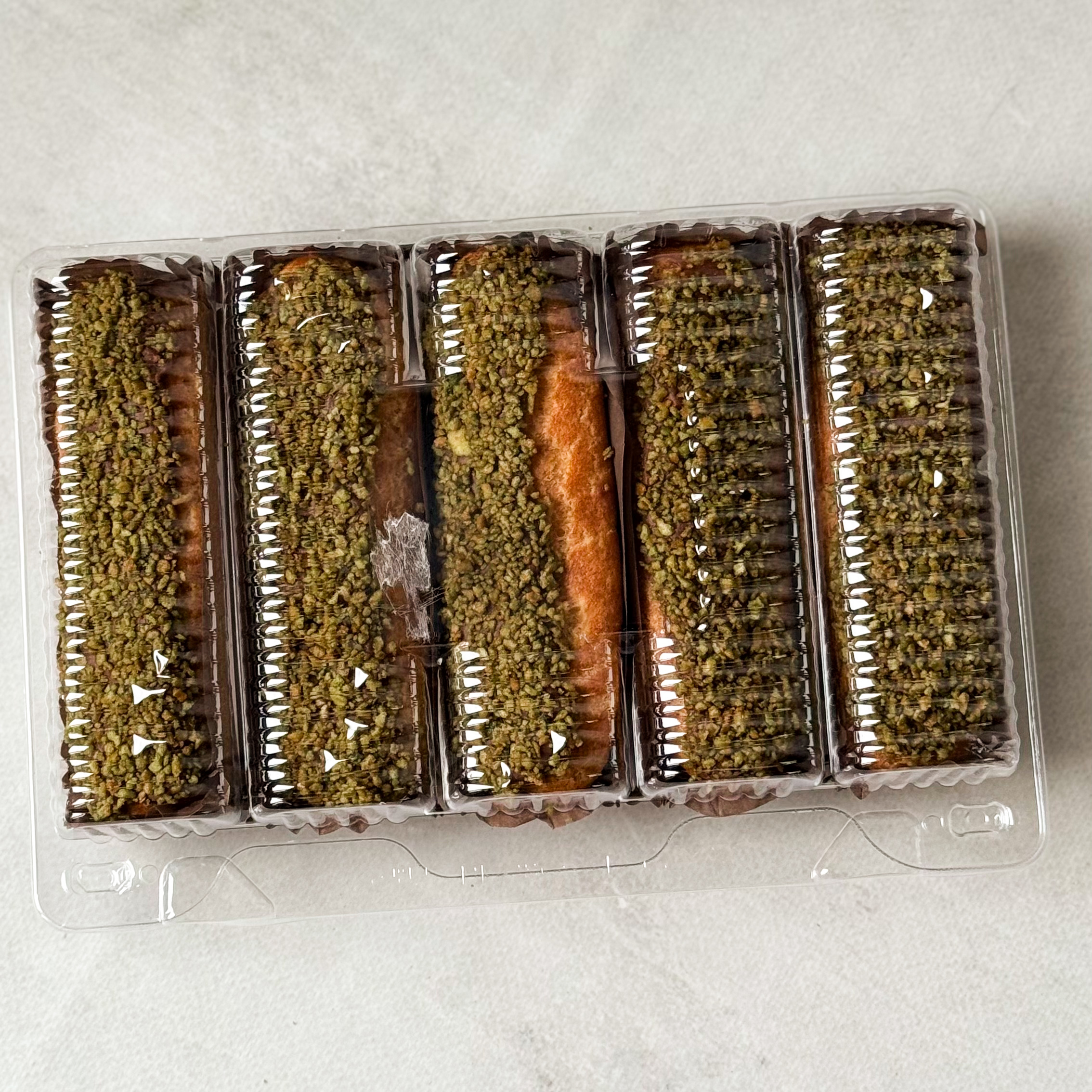 Состав: меланж пастеризованный яйцо куриное; крем на растительных маслах «для взбивания»: вода, заменитель масла какао нетемперируемый лауринового типа (рафинированное дезодорированное пальмовое масло, эмульгатор соевый лецитин), комплексная пищевая добавка (эмульгатор - стеароил-2-лактилат натрия, сахар, стабилизатор: гидроксипропилметилцеллюлоза, эмульгатор целлюлоза микрокристаллическая, ароматизатор; загуститель: карбоксиметилцеллюлоза, эмульгатор: эфиры полиглицерина и жирных кислот, глюкоза, эмульгатор: полиоксиэтилен сорбитан моностеарат, регулятор кислотности: ортофосфат натрия 2-замещенный, соль, регулятор кислотности: цитрат натрия 3-замещенный; молочная шоколадная масса: сахар, молоко сухое цельное, какао-масло, какао тертое, эмульгатор (соевый лецитин), ароматизатор (ванилин); крем сливочный ультрапастеризованный «сливки для взбивания»: нормализованные сливки, стабилизатор (каррагинан); мука пшеничная высшего сорта; молоко питьевое ультрапастеризованное; маргарин: рафинированные дезодорированные растительные масла (модифици-рованное подсолнечное, подсолнечное), вода, эмульгаторы (моно- и диглицериды жирных кислот, эфиры полиглицерина и жирных кислот, соевый лецитин), соль, консервант (сорбиновая кислота), краситель (бетакаротин), ароматизатор); паста фисташковая натуральная: ядра фисташки; вафельная крошка карамелизированная: пшеничная мука, сахар, масло кокосовое рафинированное дезодорированное, эмульгатор - лецитин соевый, клетчатка пшеничная, ароматизатор "Ваниль»; сахарная пудра; сливки замороженные: сливки пастеризованные из коровьего молока; глюкоза ферментированная: вода питьевая, дрожжевой экстракт, глюкоза, гидролизат казеина, бактериальная закваска; соль пищевая; патока высокоосахаренная: сироп глюкозный; сахар; пекарский порошок: крахмал кукурузный, эмульгатор (пирофосфат) разрыхлитель (гидрокарбонат натрия); комплексная пищевая добавка – краситель: вода, эмульгатор: полиоксиэтилен (20) сорбитан моноолеат, носитель: пропиленгликоль, красители: медные комплексы хролофиллов, турмерик. Продукт содержит аллергены: молоко, глютен, яйцо, сою и продукты их переработки. Может содержать следы кунжута, горчицы, сельдерея, орехов, арахиса, люпина, аспартама, рыбы и ракообразных.