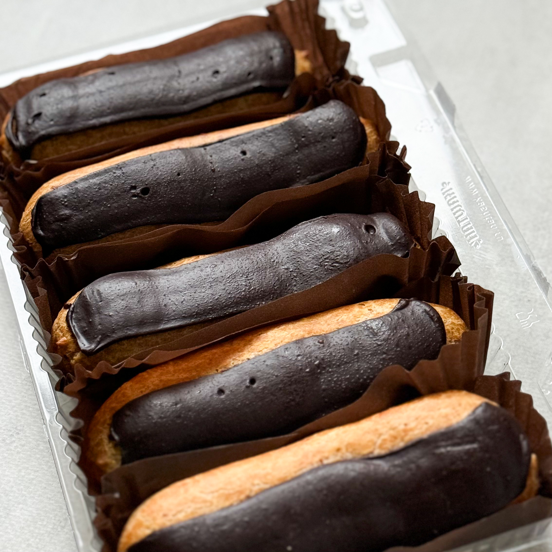 Состав: крем сливочный ультрапастеризованный «сливки для взбивания»: нормализованные сливки, стабилизатор (каррагинан); сахарная помадка: сахар, глюкозный сироп, вода питьевая, эмульгатор (моно-и диглицериды жирных кислот), регулятор кислотности (лимонная кислота); шоколад тёмный: какао тёртое, сахар, эмульгатор (соевый лецитин), ароматизатор (экстракт ванили); меланж пастеризованный яйцо куриное; мука пшеничная высшего сорта; молоко питьевое ультрапастеризованное; вода питьевая; маргарин для заварного теста: рафинированные дезодорированные растительные масла (модифицированное подсолнечное, подсолнечное), вода, эмульгаторы (моно- и диглицериды жирных кислот, эфиры полиглицерина и жирных кислот, соевый лецитин), соль, консервант (сорбиновая кислота), краситель (бета-каротин), ароматизатор); сахар; желток яичный пастеризованный; сливки замороженные: сливки пастеризованные из коровьего молока; патока высокоосахаренная: глюкозный сироп; фруктоза; соль Экстра (содержит агент антислеживающий агент ферроцианид калия пищевая добавка: краситель сахарный колер I простой; комплексная пищевая добавка – краситель: носитель (глицерин), краситель (уголь растительный), эмульгатор (полиоксиэтиленсорбитан моноолеат); пекарский порошок: крахмал кукурузный, эмульгатор (пирофосфат) разрыхлитель (гидрокарбонат натрия). Продукт содержит аллергены: молоко, глютен, яйцо, сою и продукты их переработки. Может содержать следы , рыбы, кунжута, горчицы, сельдерея, орехов и арахиса.