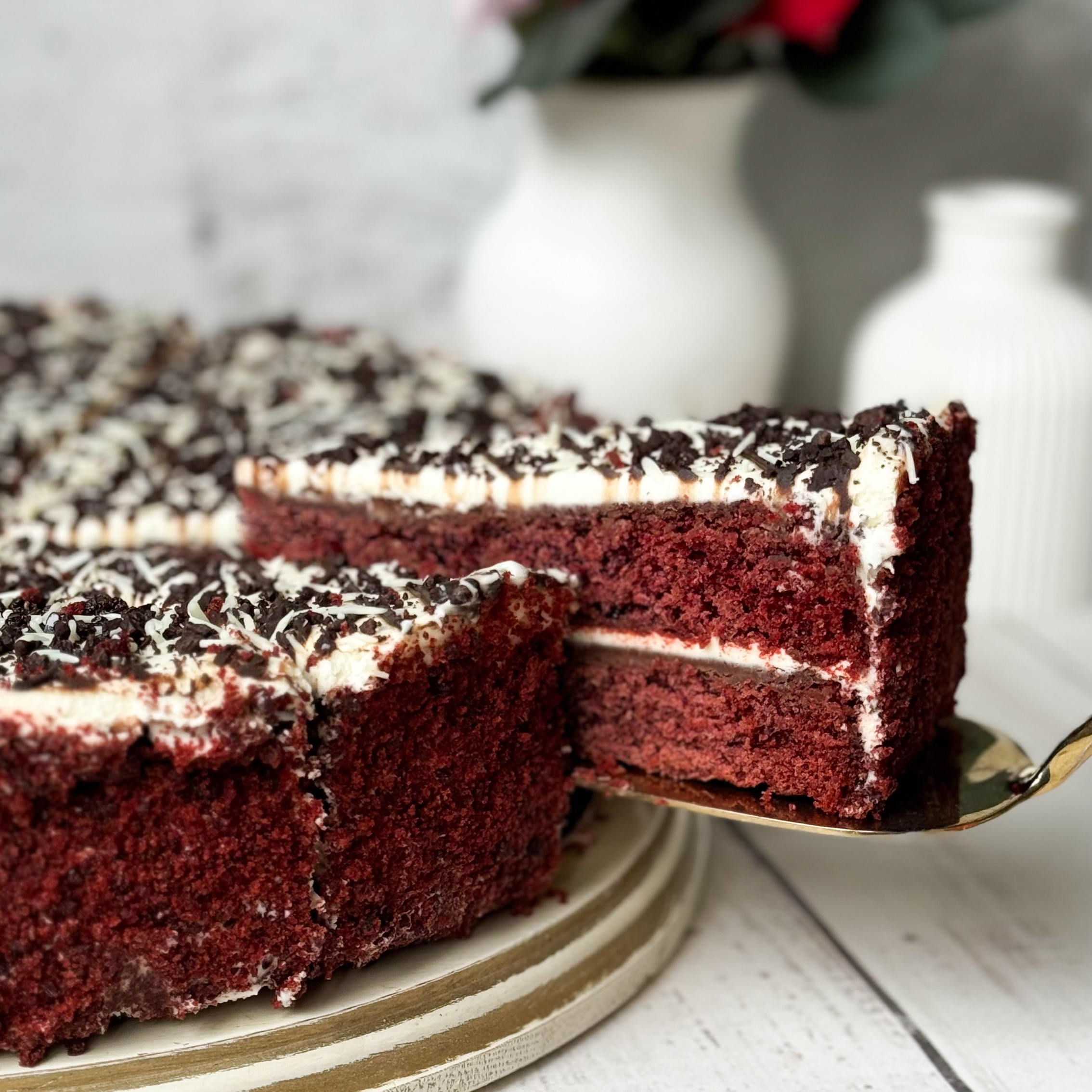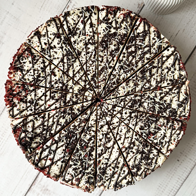 Трехслойный торт с шоколадными прослойками и нежнейшим сливочным кремом с белым шоколадом.