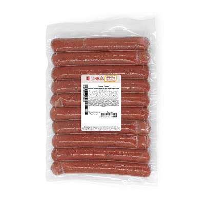 Вес сосиски - 72гр.+/- 3гр, диаметр 24мм, длина сосиски 19см.