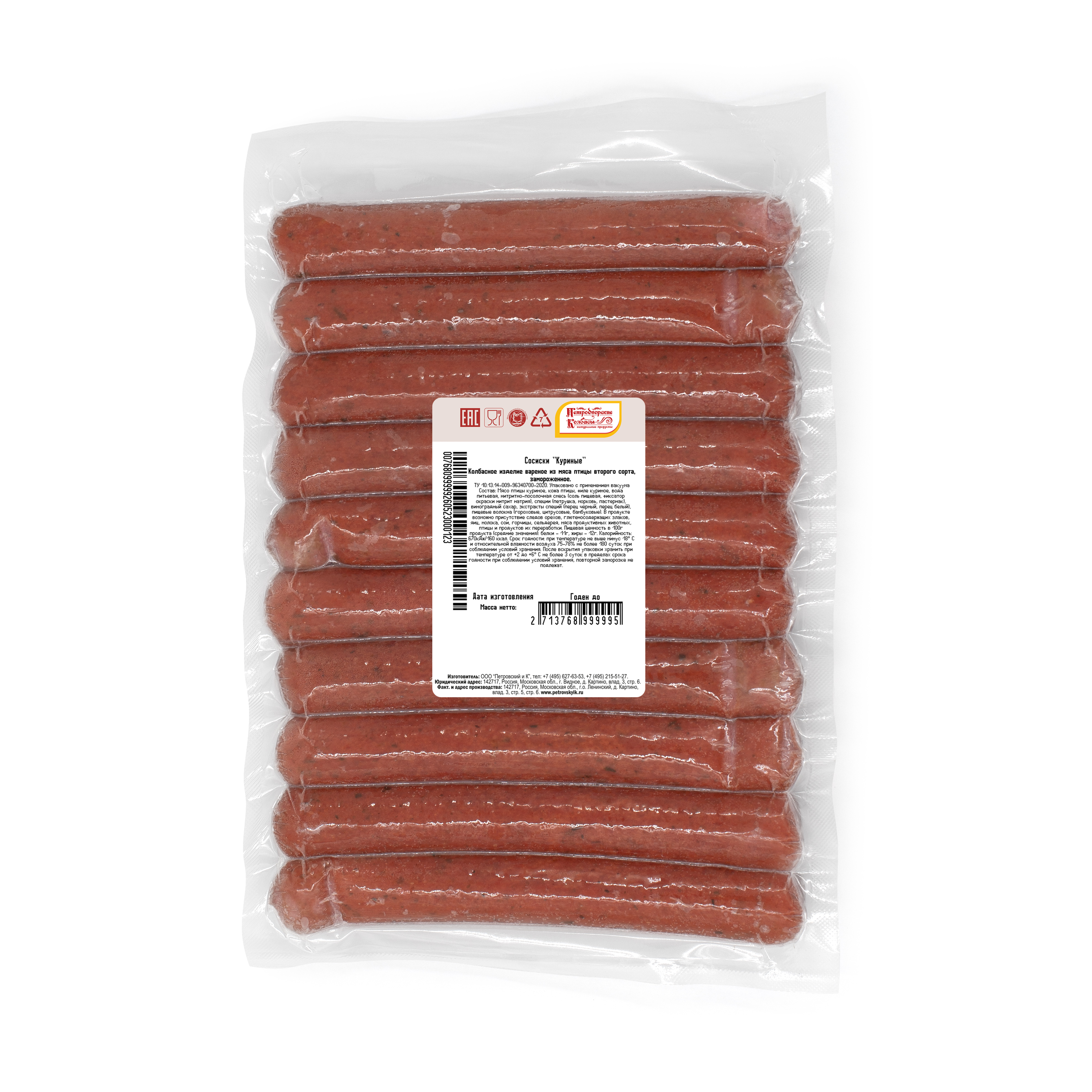 Сосиски "Куриные" с/м в/у ~72гр*10шт.