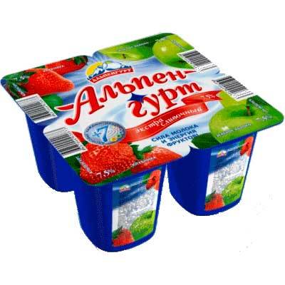 Йогурт Альпенгурт Экстра Сливочный Зелёное Яблоко и Клубника 7,5% 100г